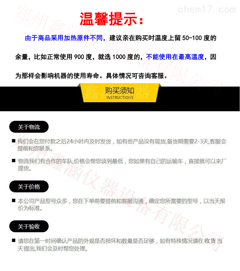 (二)使用時爐膛溫度不得超過爐溫,也不得在額定溫度下長時間工作。實驗過程中,使用人不得離開,隨時注意溫度的變化,如發(fā)現(xiàn)異常情況,應(yīng)立即斷電,并由維修人員檢修。
